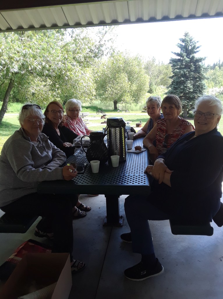 Pauline Bill, Marilyn Wattenbarger, Grace Reister(Guest from Argyle) Faye Mayberry, Diane Dammann(Guest from Argyle) Grace Schefflemair. Vi Moore, Dorothy Bickley and Evelyn Cressey were just leaving as we, the guests, arrived. It was a beautiful day in a beautiful setting and lovely company.