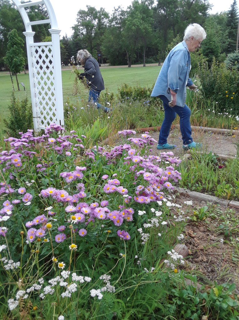 Those ARGYLE WOMEN are at it again. Working in the garden on Saturday morning we were pleased to see such a nice show of Fleeban(?) and the roses.