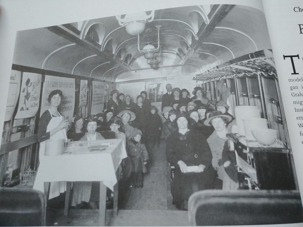 Many Women’s Institute branches were organized on the “Mixed Farming Special”, a demonstration train outfitted with a women’s car and nursery. This train was used by CN on the prairies c. 1920