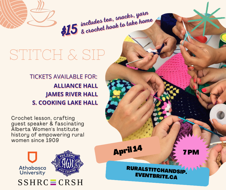 Friday, April 14th We are excited to be partnering with Athabasca University to bring you Stitch & Sip offered in three locations around Alberta.